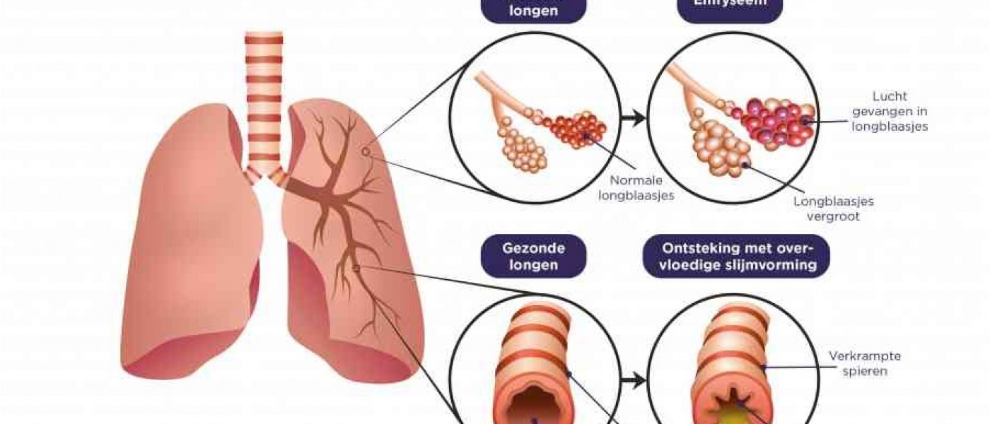 De ziekte COPD geeft regelmatig ontstekingsactiviteit in de diepere luchtwegen. Dit leidt tot een geleidelijk verlies aan elasticiteit in de longen. Daardoor gaan uw longblaasjes steeds minder goed functioneren en verloopt vooral de uitademing minder makkelijk. Een goede en volledige uitademing zorgt ervoor dat koolzuur uit het lichaam verdwijnt.