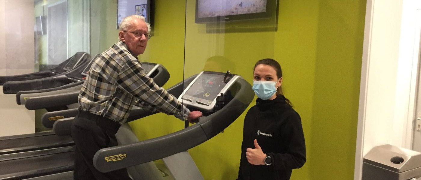 ‘Meneer Vrins kwam met claudicatio klachten naar ons toe. Door de vernauwing in zijn vaten had hij pijn met lopen. Hij kon niet naar zijn dochter lopen die 500 meter verder woont, daarvoor moest hij meerdere keren stoppen. Waar meneer in het begin maar 3 minuten op de loopband kon lopen, loopt hij door training en een goed doorzettingsvermogen inmiddels 2 x een half uur op onze loopband.’